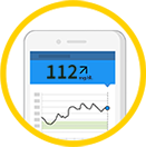 "לעקוב אחר רמות הסוכר ישירות מטלפון תואם5 בכל עת 6, בכל מקום 7