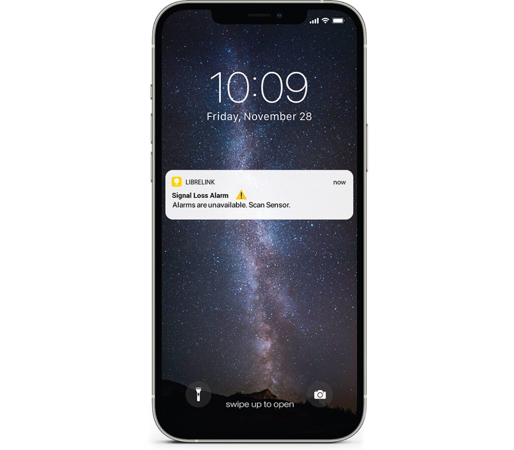 אם היא מופעלת, התראת אובדן אות מעדכנת אתכם במידה והחיישן לא תקשר עם האפליקציה◊ במשך 20 דקות ואינכם מקבלים התראות רמת סוכר נמוכה או גבוהה.
