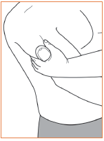 שלב זה חשוב אם איזור חיבור הפוד שלך כחוש או שאין בו הרבה רקמה שומנית. הנח את ידך על גבי הפוד וצור קפל עור רחב באיזור שמקיף את חלונית הצפייה. לאחר מכן לחץ על הלחצן Start (התחל) ב-PDM . ניתן לשחרר את הקפל עם החדרת הקנולה.
